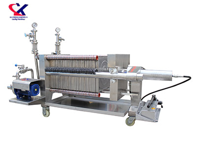 纸板精滤机的过滤原理为用泵或直接与硅藻土山西过滤机出口连接,把需要进一步过滤的液态物质输送到由滤板、密封件内(外边不搭精滤纸板的过滤板),由于过滤前后的压力差,待滤液能穿过精滤纸板流入过滤板框内,在精滤纸板的截留、筛分和吸附作用下,将滤液中的菌体或固体微粒等杂质分离出来。澄清后的液体由过滤板另一侧的出口通道流出。